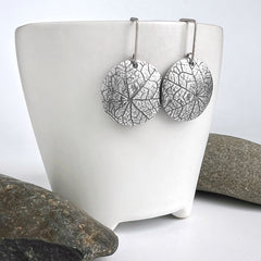 Embrace the uniqueness of nature with our Round Nasturtium Earrings. Handcrafted from fine silver clay, each earring features a one-of-a-kind nasturtium leaf imprint. These earrings are a perfect accessory for summer, adding a touch of love and beauty from the garden to your look.