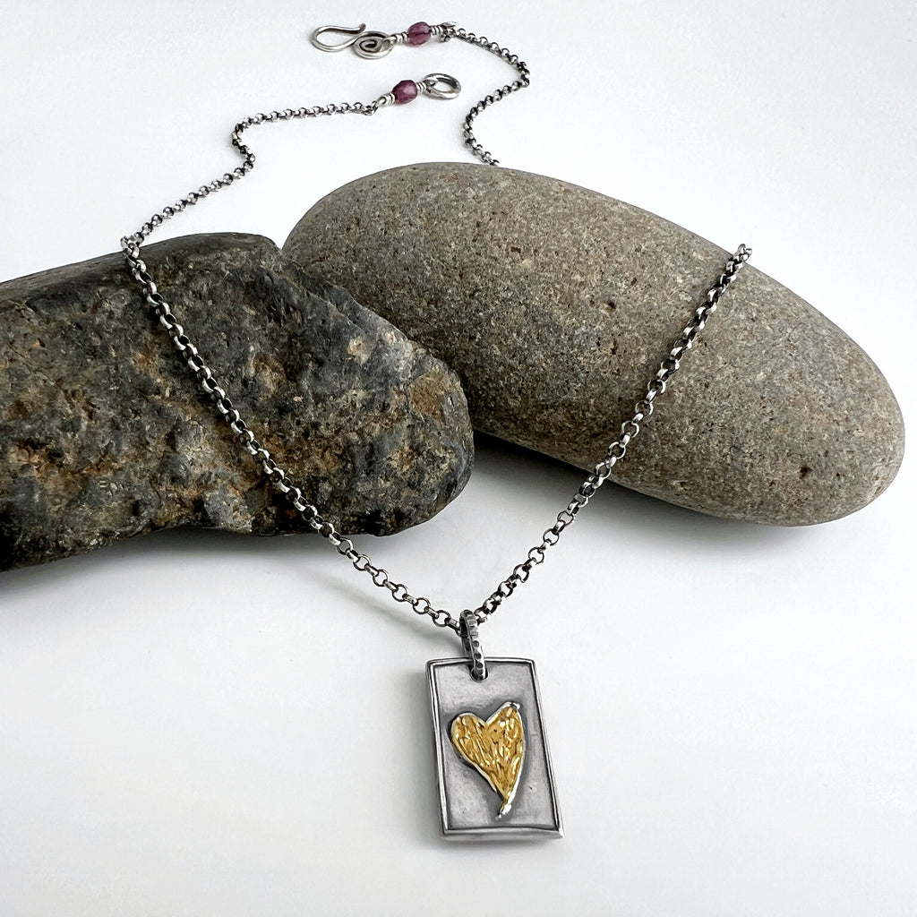 Sprinkle some love into your wardrobe with this Gold Heart Necklace. This fine silver pendant is accented with 24k gold, adding a touch of whimsy. The sterling silver chain adds the perfect finishing touch. Wear it solo or layer it for a playful look!