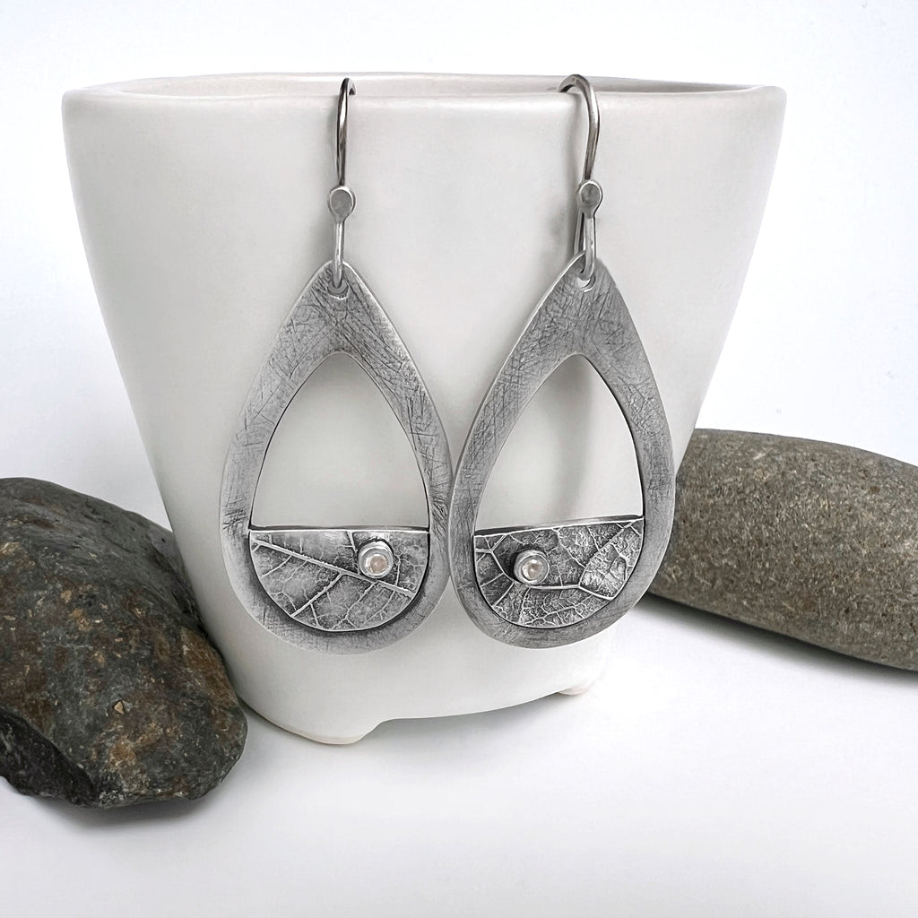 Silver Teardrop Leaf Earrings